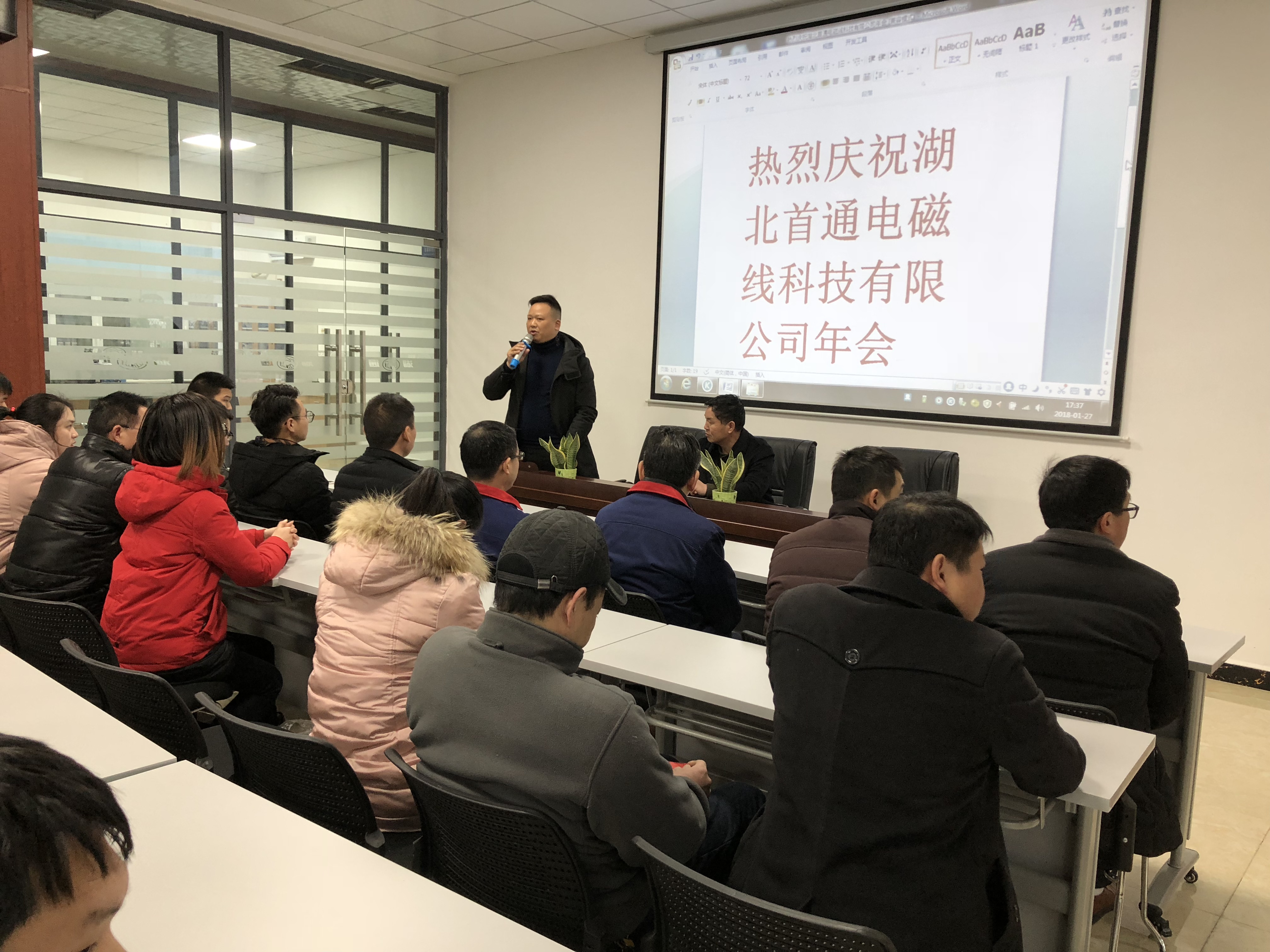 2018年1月27日,公司在多媒體會(huì)議室舉行了2017年年會(huì)。雖然開廠短短幾個(gè)月,但我們各項(xiàng)設(shè)施、人員已配備齊全。這是湖北首通第一個(gè)年會(huì),同樣也是湖通人的第一個(gè)年會(huì)。會(huì)上,我司總經(jīng)理韓照虎首先總結(jié)了一下2017年我司建廠到正式投產(chǎn)完成的一系列工作情況;其次,匯報(bào)了2018年度工作計(jì)劃,新的一年工作部署;最后,歡迎大家來到湖北首通,讓我們成為一家人。